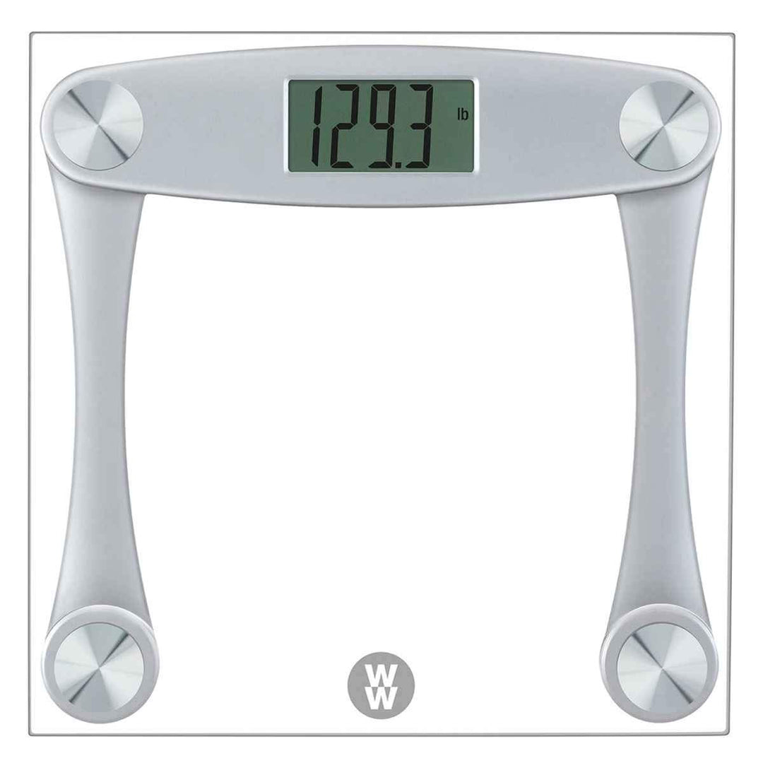 Weight Watchers by Conair Digital Glass Bathroom Scale | Body Weight Scale with Easy-to-Read Display, 400 lb Capacity, Non-Slip Feet, Silver Frame